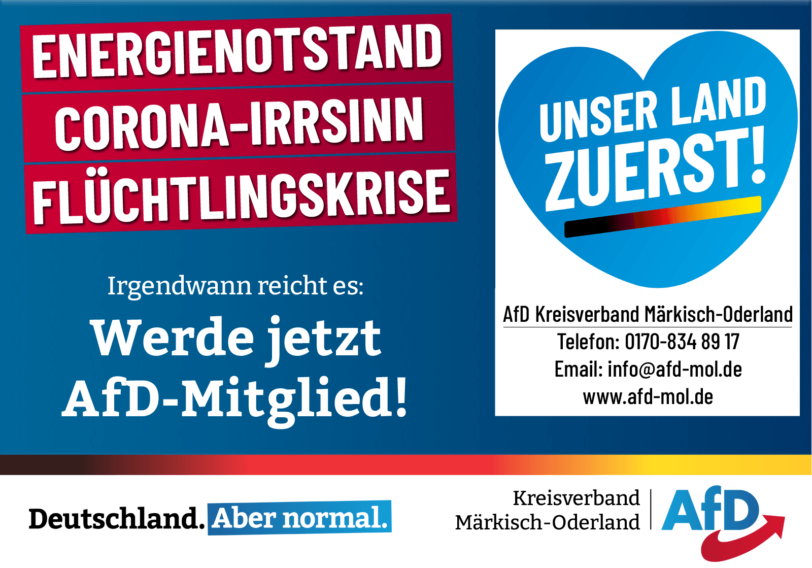 Ihre Stimme verändert Politik. Machen Sie bei der AfD im Kreisverband MOL mit!