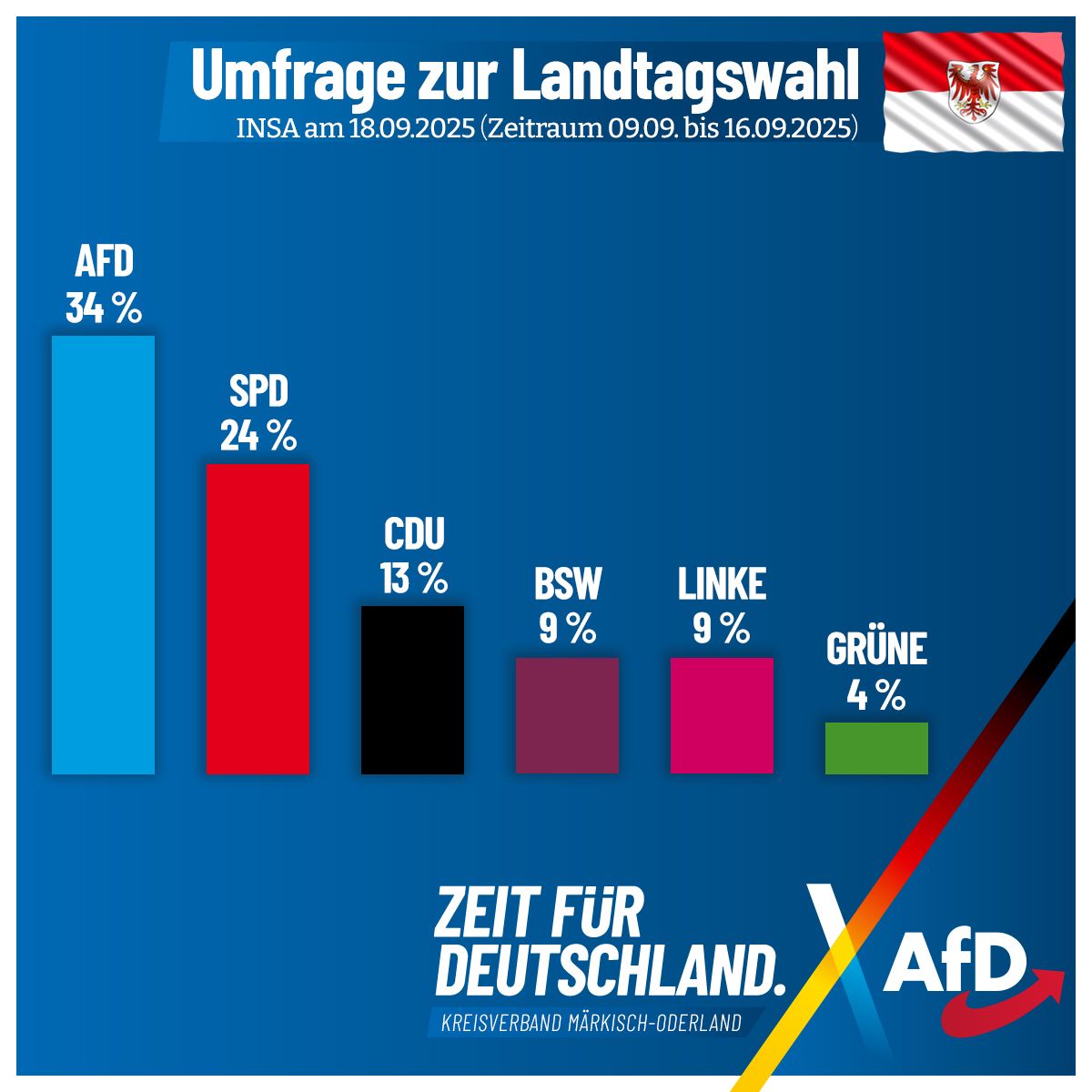 AfD in Brandenburg bei 34 Prozent – stärker als die Regierungskoalition!