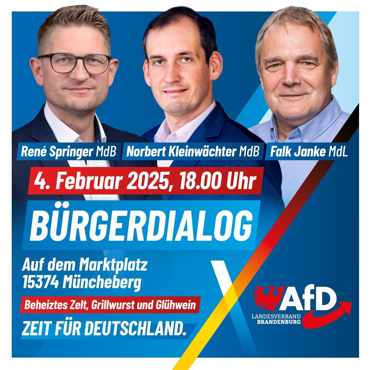 Am 4. Februar 2025 um 18:00 Uhr laden wir Sie herzlich zu unserem Bürgerdialog auf dem Marktplatz in Müncheberg ein.