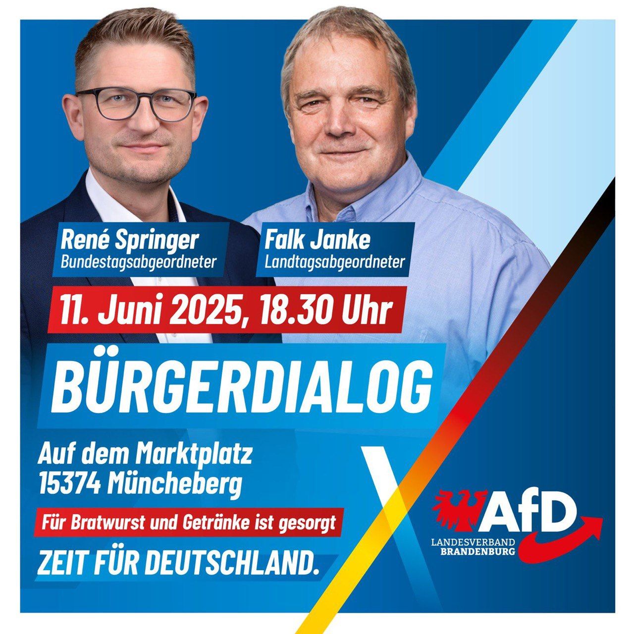 Einladung zum Bürgerdialog mit dem Bundestagsabgeordneten René Springer und dem Landtagsabgeordneten Falk Janke!