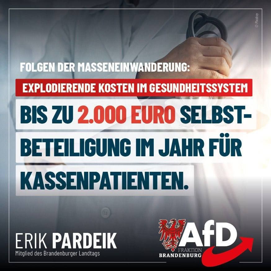 Die gesetzlichen Krankenkassen geraten immer mehr in eine finanzielle Notlage. Immer mehr Leistungsempfänger stehen weniger Beitragszahlern gegenüber, Hauptursache ist die Massenzuwanderung in unser Land. Um Abhilfe zu schaffen, denken die ersten gesetzlichen Krankenkassen über eine verstärkte Eigenbeteiligung der gesetzlich Versicherten nach. So kommen in den Medien Forderungen wie die des Prof. Bernd Raffelhüschen zu Wort, dass Patienten ihre Gesundheitsbehandlung bis zu 50 % selbst bezahlen sollen. Die jährliche Deckelung soll 2000 € betragen.