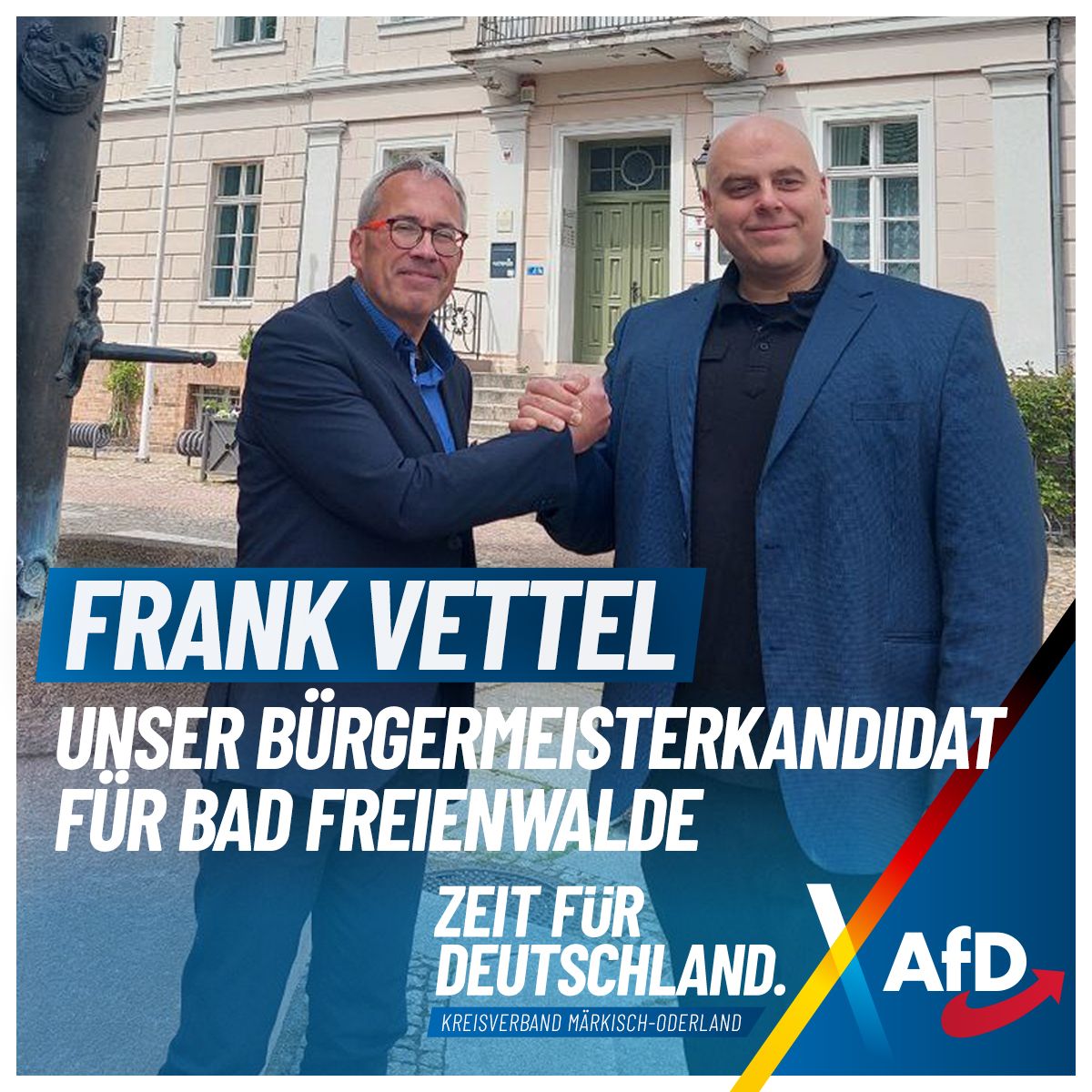 Frank Vettel wird als parteiloser Kandidat antreten, und unser AfD-Ortsverband und der Kreisverband MOL werden ihn bei allem aus vollem Herzen unterstützen.