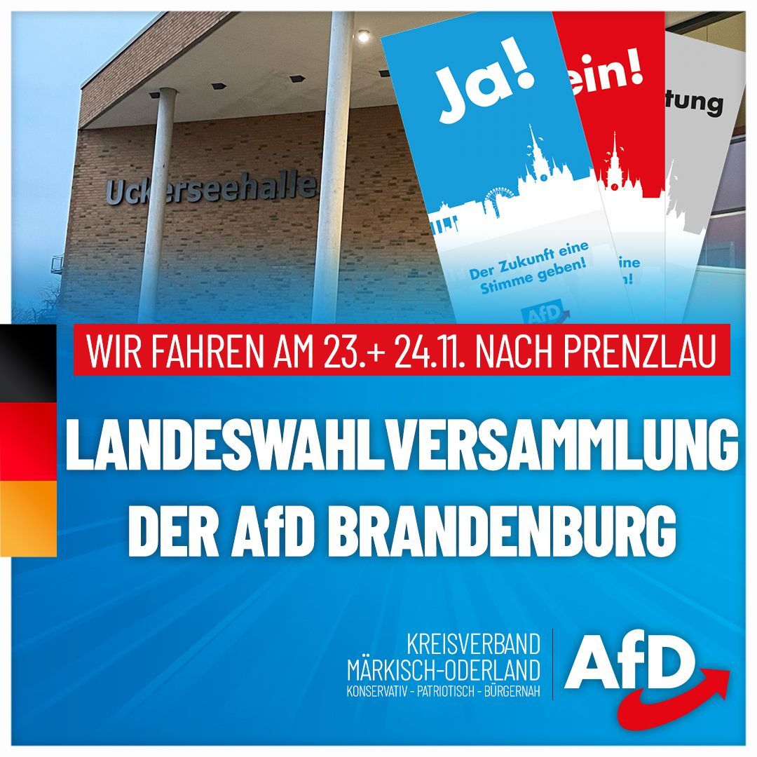 Am Wochenende findet in Prenzlau die Landeswahlversammlung der AfD Brandenburg statt. Dort werden die Kandidaten für unsere Landesliste zur Bundestagswahl gewählt. Wir als AfD sind bereit – nicht nur für den bevorstehenden Bundestagswahlkampf, sondern auch für die Übernahme politischer Verantwortung.