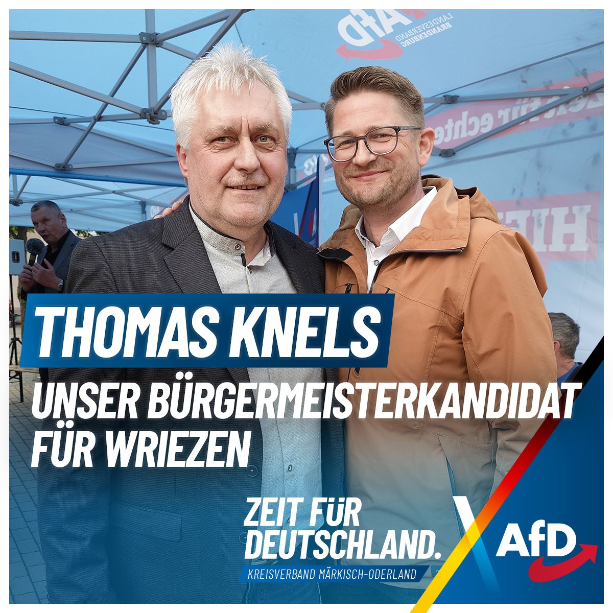 Am 02.05.2025 wurde Thomas Knels zum AfD-Kandidaten für die Bürgermeisterwahl in Wriezen gewählt. Beim gestrigen Bürgerdialog auf dem Markt hatte Thomas eine erste Gelegenheit, den Wriezenern sich selbst und seine Positionen vorzustellen. Für die meisten Bürger aus Wriezen und dem Umland ist er allerdings kein Unbekannter, da er seit vielen Jahren einen Handwerksbetrieb führt und sich kommunalpolitisch aktiv in der Wriezener SVV engagiert. Bekannt ist Thomas auch durch seine erfolgreichen Initiativen zur Bekämpfung der Naturzerstörung durch den massiven Ausbau von Wind- und Solarkraftwerken in seiner Heimatstadt und den umliegenden Gemeinden. Gestärkt wird er in seiner Entscheidung, für das Amt des Bürgermeisters zu kandidieren, nicht nur durch den Rückhalt in seiner Familie sondern auch durch seinen Orts- sowie unseren gesamten AfD-Kreisverband Märkisch-Oderland.