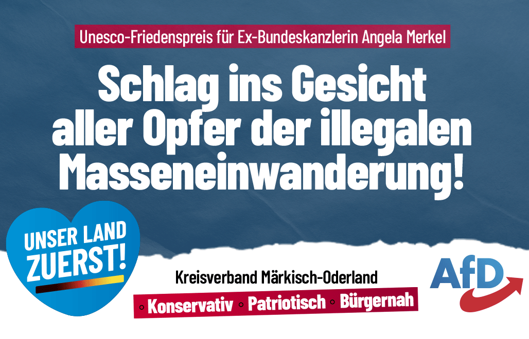 Unesco-Friedenspreis für Merkel ist Schlag ins Gesicht aller Opfer der illegalen Massenwanwanderung