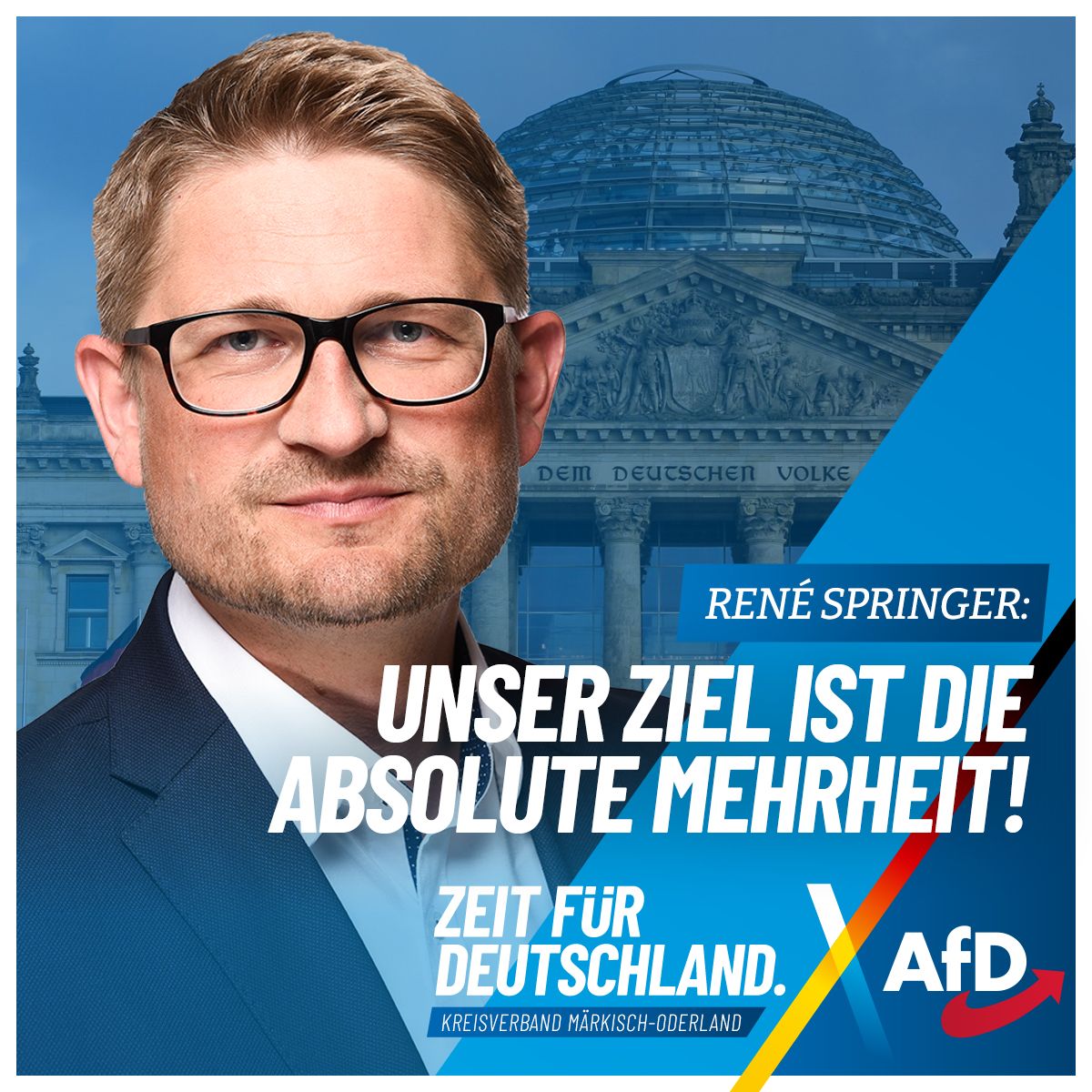 „Die Bürger haben die Nase voll von Parteien, die versprechen und nicht liefern. Jahrzehntelange Regierungsbeteiligung der Altparteien hat zu Politikverdrossenheit geführt und unser Land in den Abstieg getrieben. Immer mehr Bürger erwarten keine Korrektur mehr, sondern einen Neuanfang. Die AfD ist die einzige politische Kraft, die diesen Aufbruch glaubwürdig, konsequent und unbeirrbar vertritt (...)"