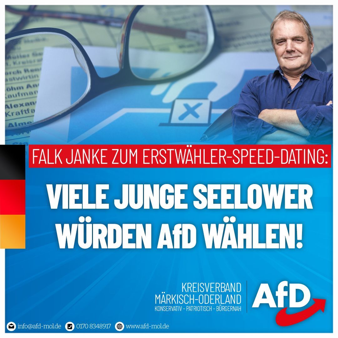 Falk Janke, unser Direktkandidat im WK34 für die Brandenburger Landtagswahl im September, mit einem Kurzbericht über seine Teilnahme bei "Erstwähler-Speed-Dating" in Seelow: