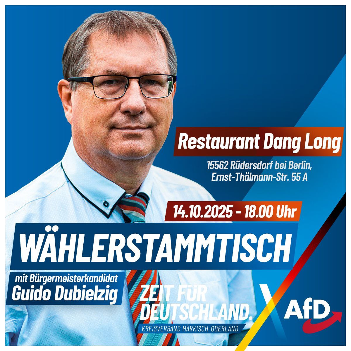Einladung zum 3.Wählerstammtisch mit AfD-Bürgermeisterkandidat Guido Dubielzig nach Rüdersdorf bei Berlin.
