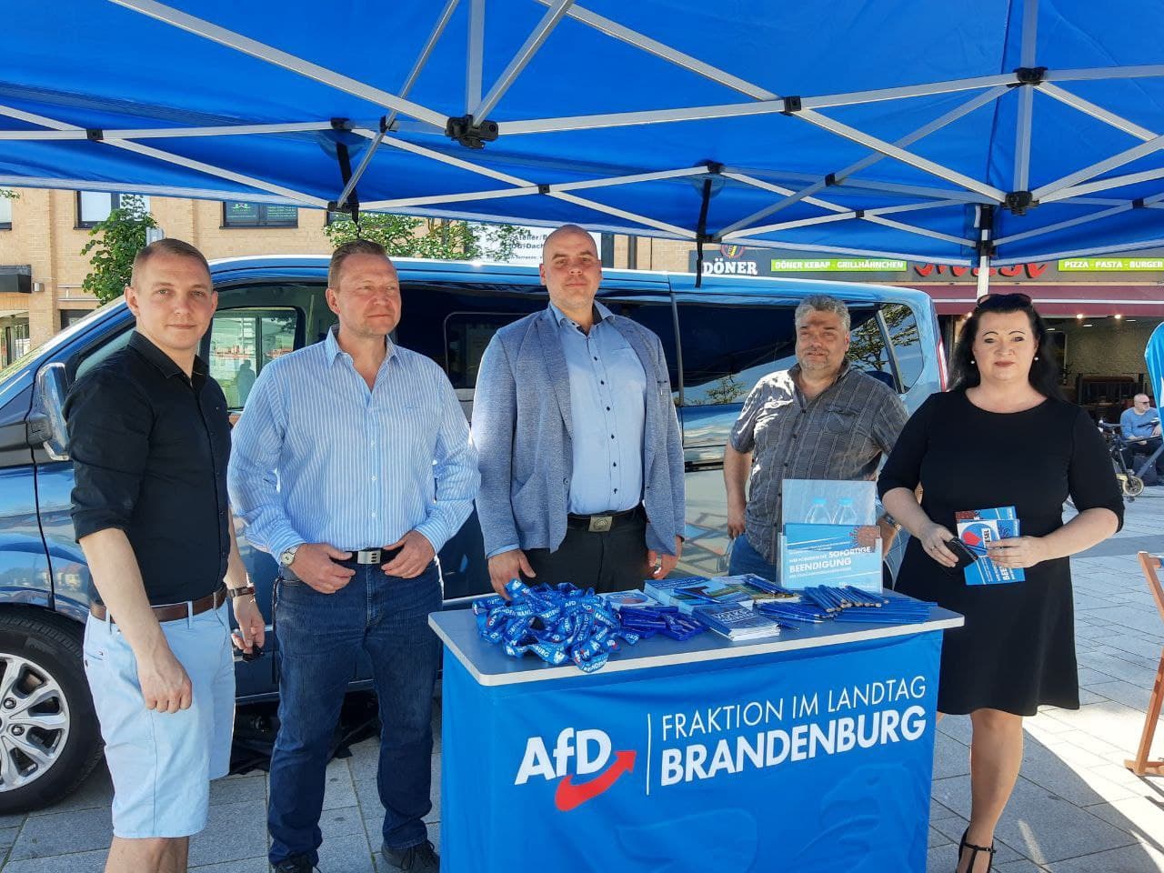 Der AfD-Landtagsabgeordnete und Direktkandidat im Wahlkreis 59, Lars Günther, war heute auf mit seinen beiden Brandenburger Landtagskollegen Birgit Bessin und Steffen John auf Wahlkampftour beim Infostand in Bernau.
